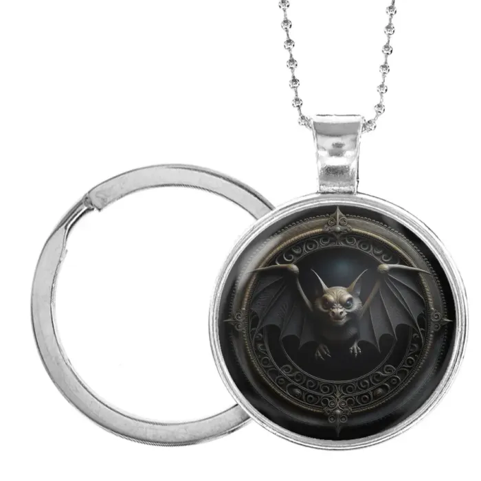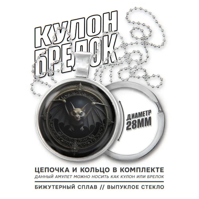 Кулон-брелок в виде летучей мыши из бижутерного сплава.