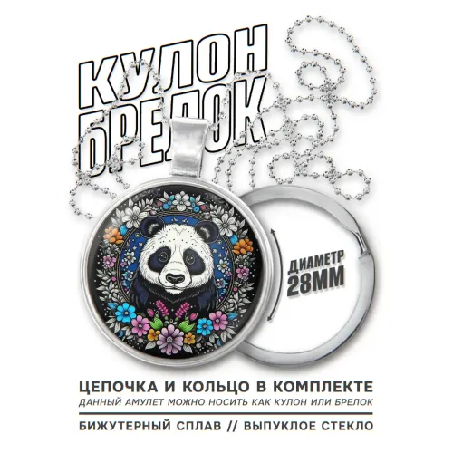 Кулон-брелок из бижутерного сплава с покрытием под серебро. Дизайн включает фигурку панды и венок.