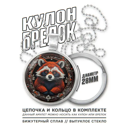 Кулон-брелок в виде рыжего енота из бижутерного сплава.