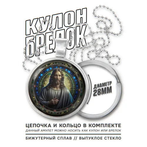 Кулон-брелок с изображением Иисуса из бижутерного сплава.