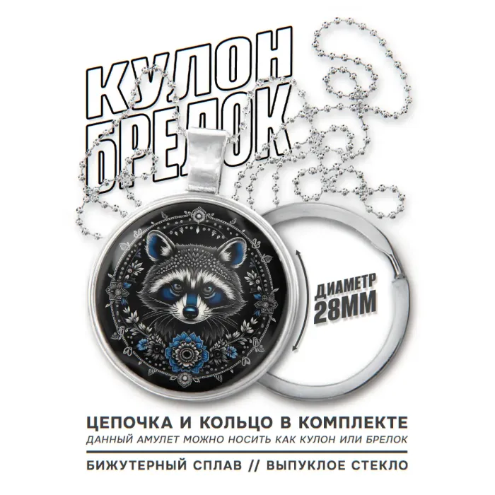 Размеры и комплектация: Диаметр 28 мм. В комплекте цепочка и кольцо. Упаковка: полипропиленовый пакет.