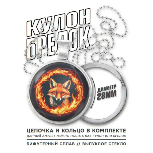 Кулон-брелок из бижутерного сплава с покрытием под серебро в виде огненного лиса.
