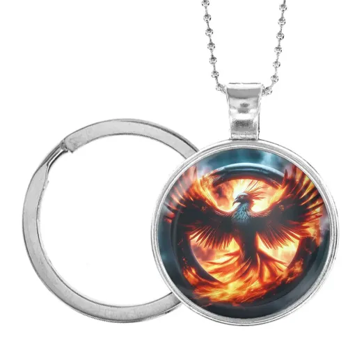 Кулон-брелок в виде феникса из бижутерного сплава с покрытием под серебро.