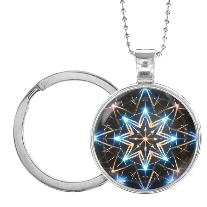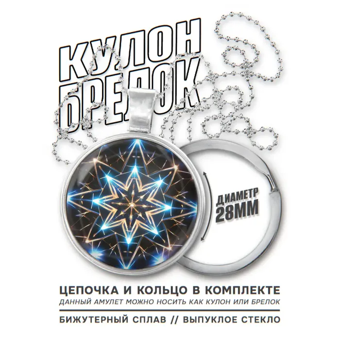 Кулон-брелок в виде восьмиконечной звезды с неоновым дизайном.
