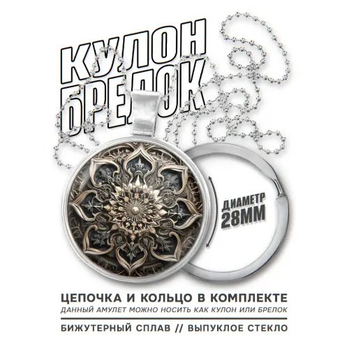 - Диаметр кулона составляет 28 мм, что позволяет использовать его как яркий акцент в любом образе.