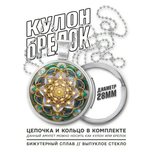 Размеры и комплектация: Диаметр кулона 28 мм. В комплект входят цепочка и кольцо. Упаковка — полипропиленовый пакет.