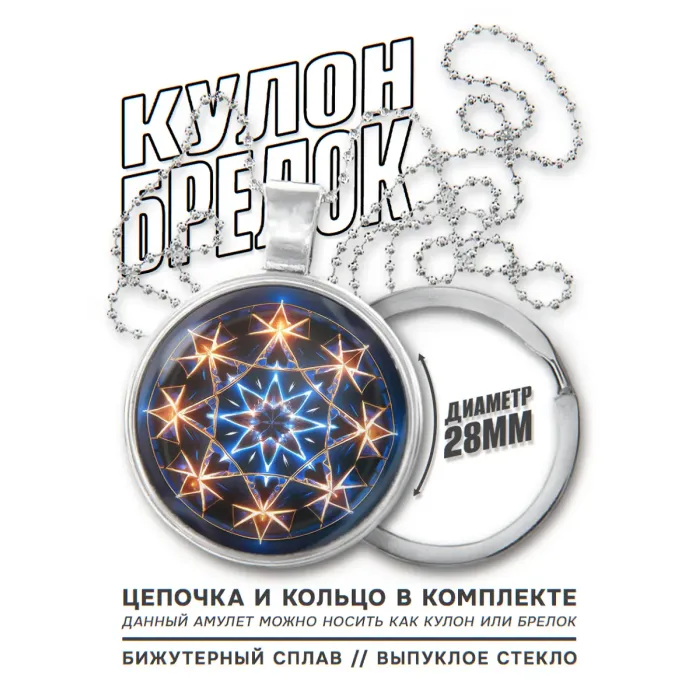 Размеры и комплектация: Диаметр кулона 28 мм. В комплекте цепочка, кольцо и полипропиленовый пакет для хранения.