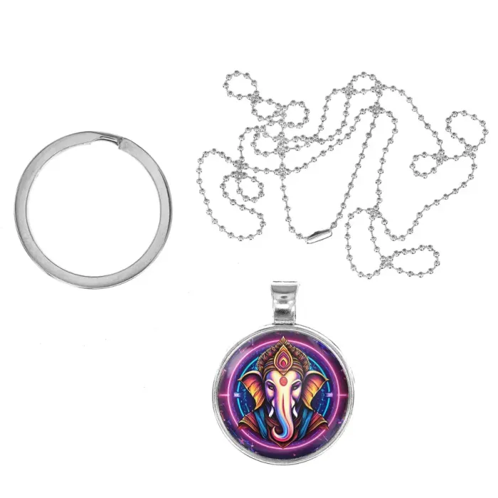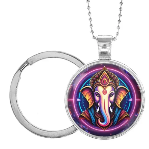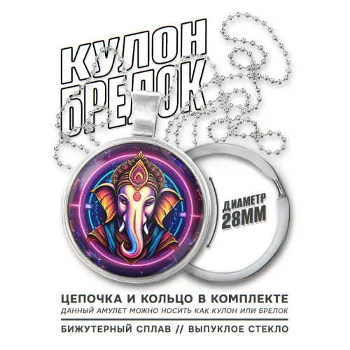 Кулон-брелок с изображением Ганеши в неоновом стиле. Изготовлен из бижутерного сплава.