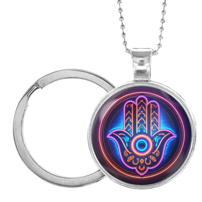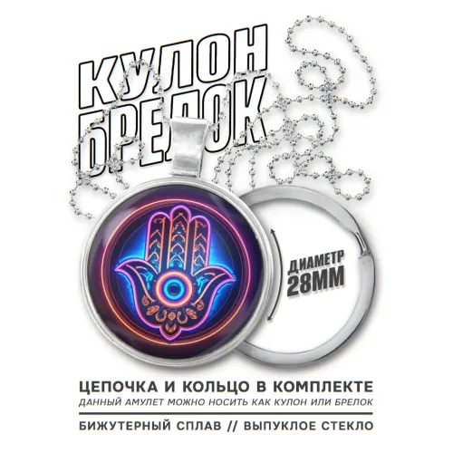 Кулон-брелок Хамса неон — это стильный аксессуар, который сочетает в себе символику защиты и элегантность. Изготовленный из бижутерного сплава с покрытием под серебро, он привлекает внимание своим ярким дизайном и уникальным стилем.