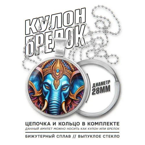 Кулон-брелок с изображением Ганеши из бижутерного сплава с покрытием под серебро.