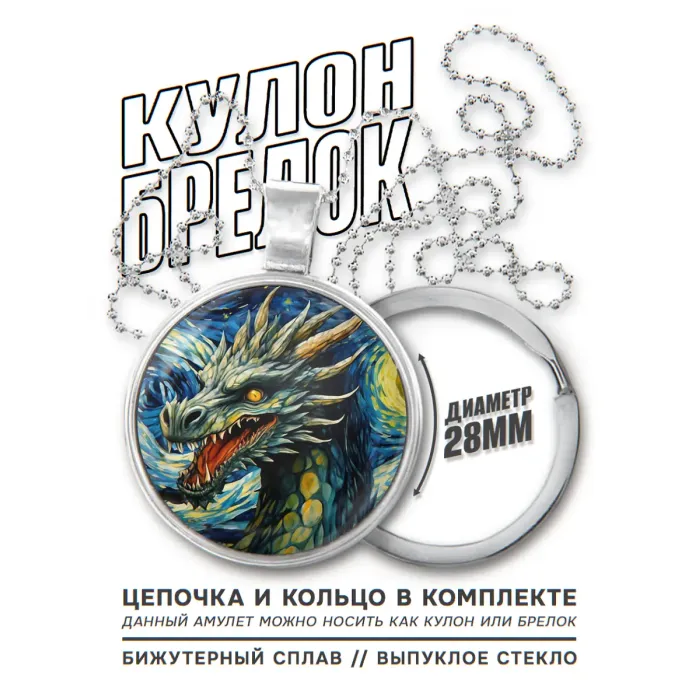 Размеры и комплектация: Диаметр кулона 28 мм. В комплект входят цепочка и кольцо. Упаковка — полипропиленовый пакет.