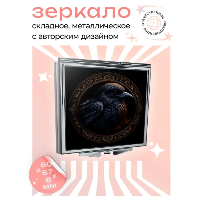 Складное зеркало квадратное Птица в профиль ZER2-0606