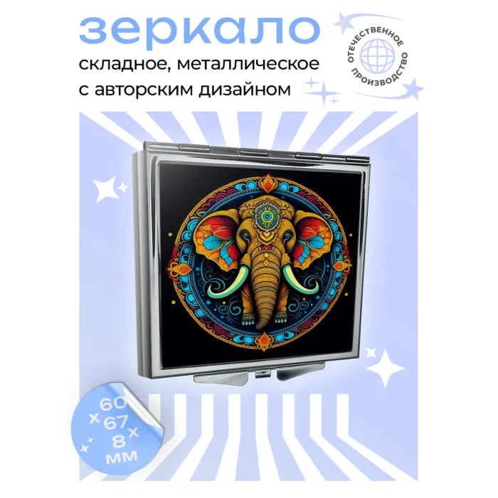 Складное зеркало квадратное Яркий слон ZER2-0611