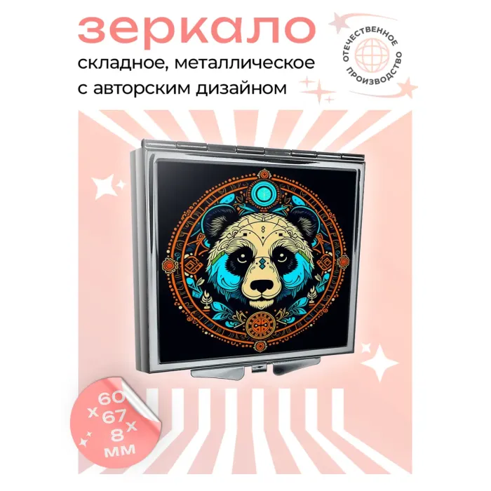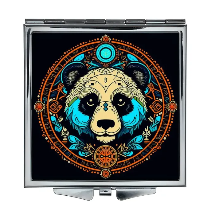 Складное зеркало квадратной формы с полноцветным изображением панды.