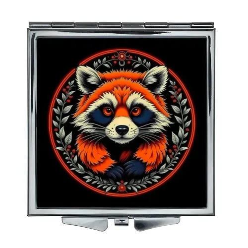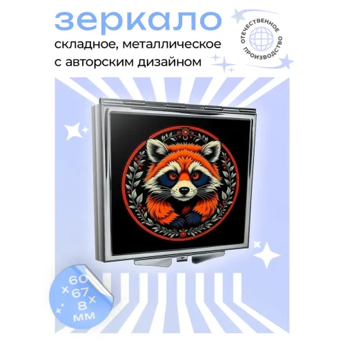 Складное квадратное зеркало с полноцветным изображением на металлической основе.