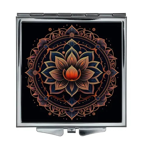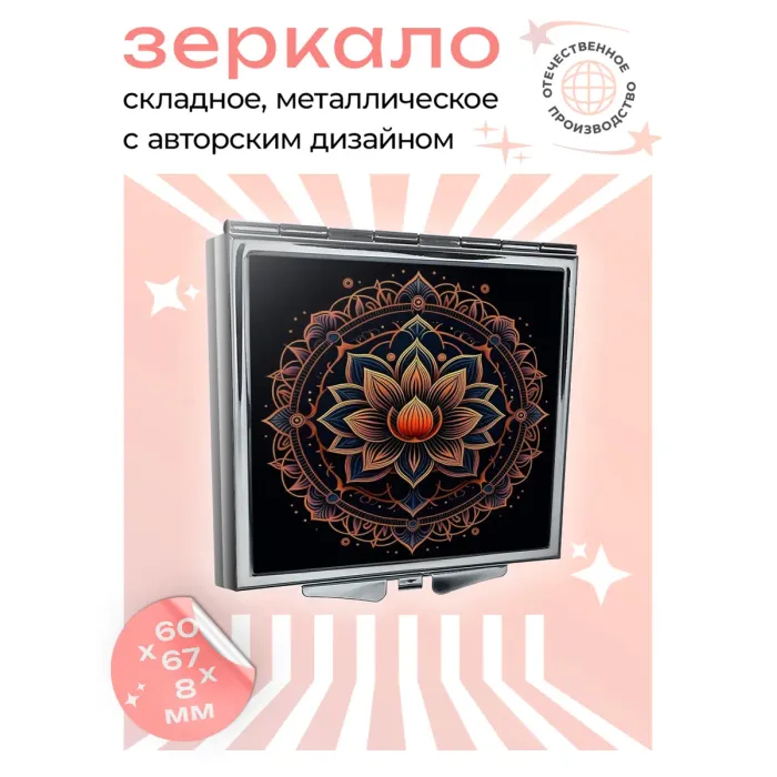 Складное зеркало квадратное Лотос в орнаменте ZER2-0646
