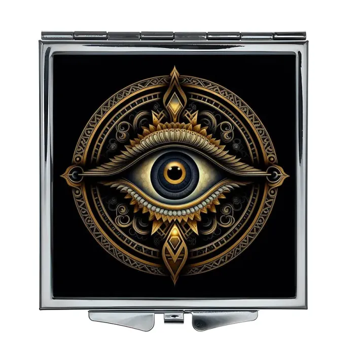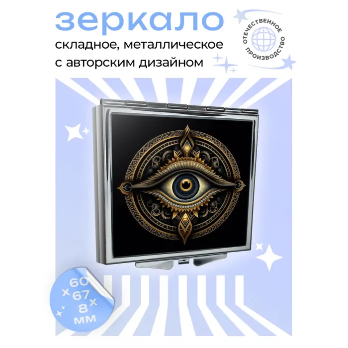 Складное зеркало квадратной формы с изображением Всевидящего ока станет стильным и практичным аксессуаром. Это изделие выполнено из качественных материалов: металл и стекло, что обеспечивает долговечность и надежность. Размер зеркала составляет 60х67х8 мм, что делает его удобным для переноски в сумке или кармане. Полноцветная печать на металле гарантирует яркость и четкость изображения, добавляя оригинальности этому предмету. Складное зеркало традиционно используется как элемент личной гигиены и стиля, а также может стать интересным подарком для близких.