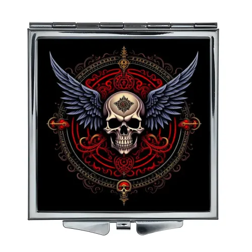 Складное зеркало квадратное Крылатый череп ZER2-0662