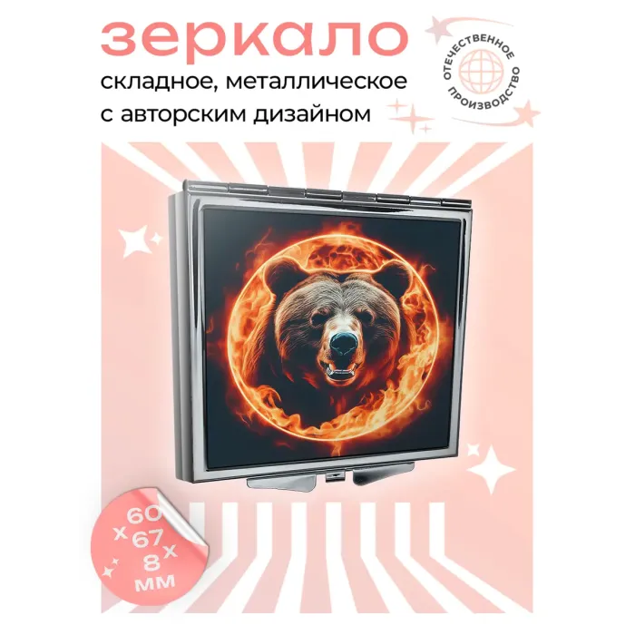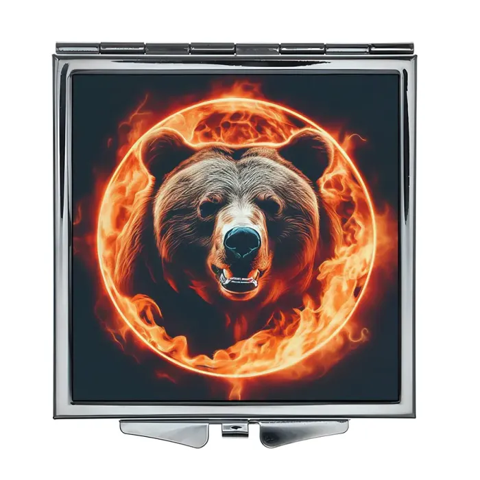 Складное квадратное зеркало с полноцветным изображением Огненного медведя.