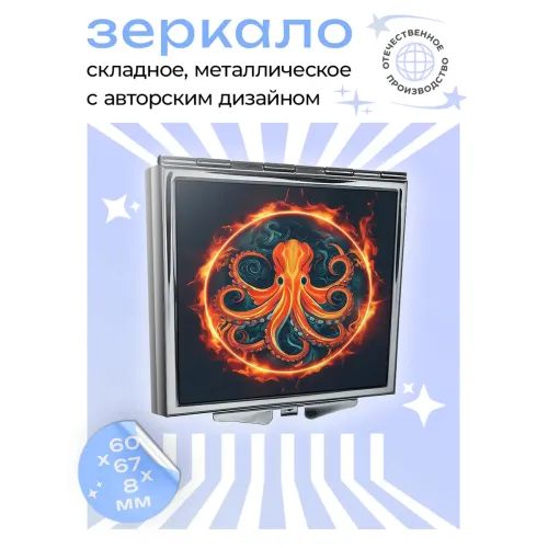 Складное зеркало квадратное Огненный осьминог ZER2-0713