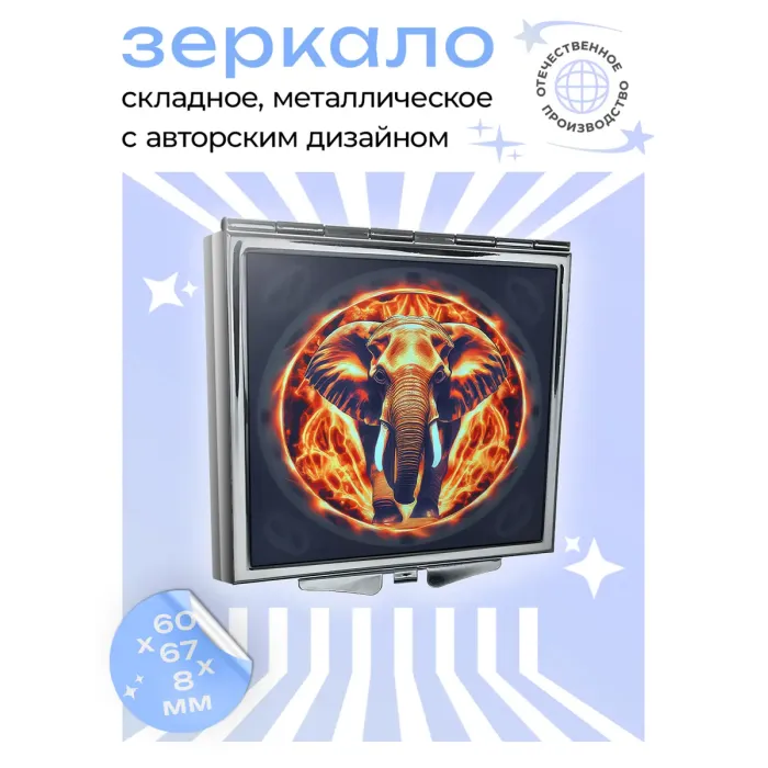 Складное зеркало квадратной формы с изображением Огненного слона.