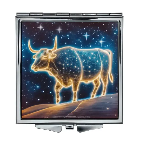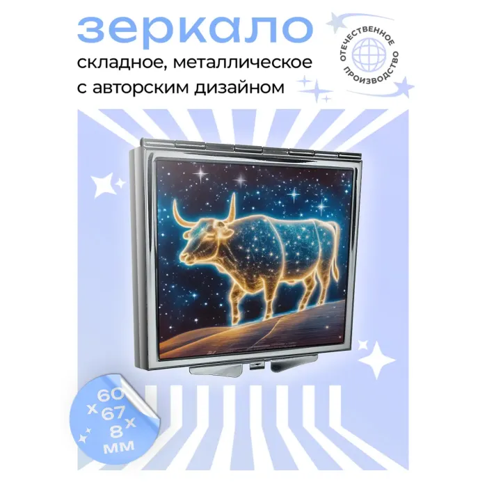 Складное квадратное зеркало с полноцветным изображением «Звёздная корова».