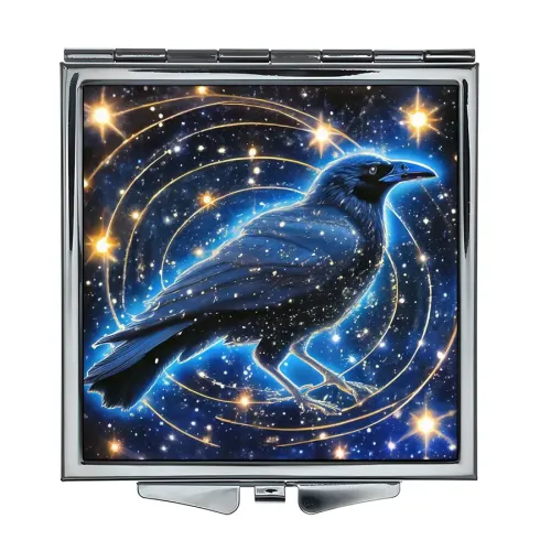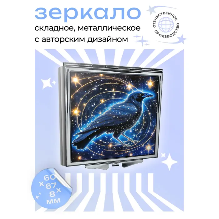 Складное квадратное зеркало с полноцветным изображением «Звёздный ворон».