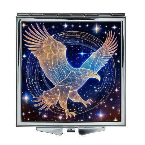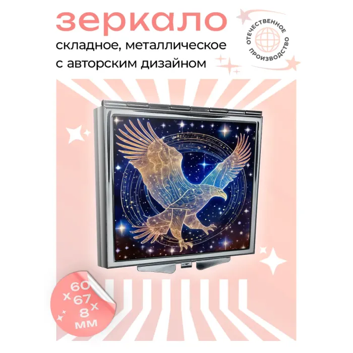 Складное квадратное зеркало с полноцветным изображением Звёздного орла на металле.