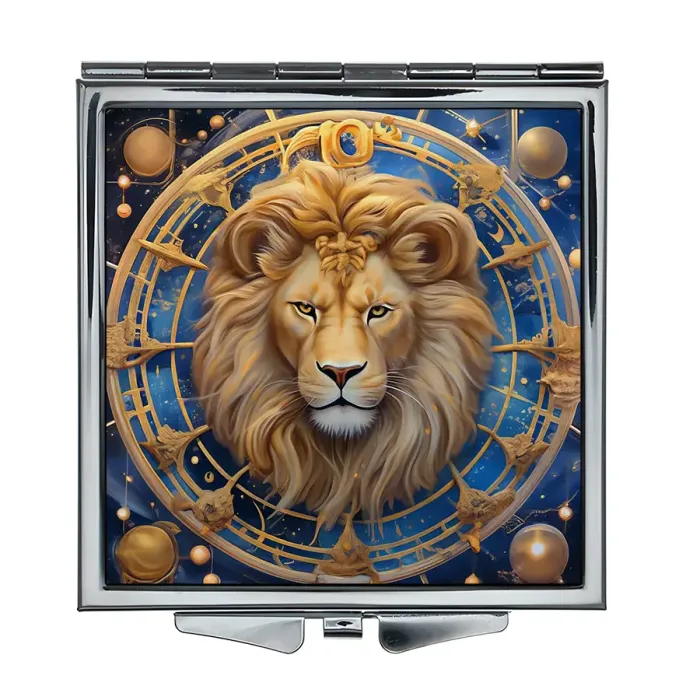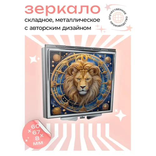 Складное зеркало квадратной формы с изображением знака зодиака Лев.