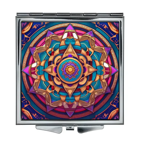 Складное квадратное зеркало с изображением «Сакральная абстракция» для использования в качестве сувенира или компактного аксессуара.