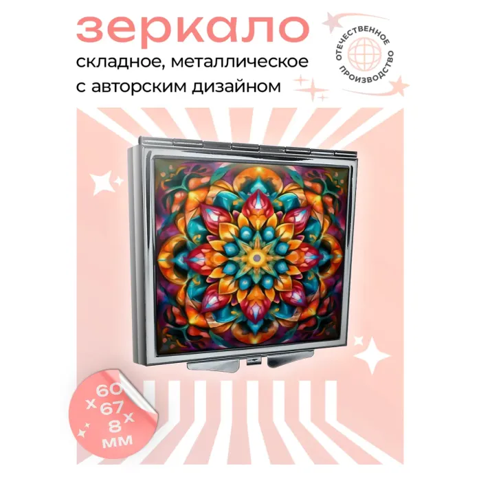 Складное квадратное зеркало с изображением символа «Цветок жизни».