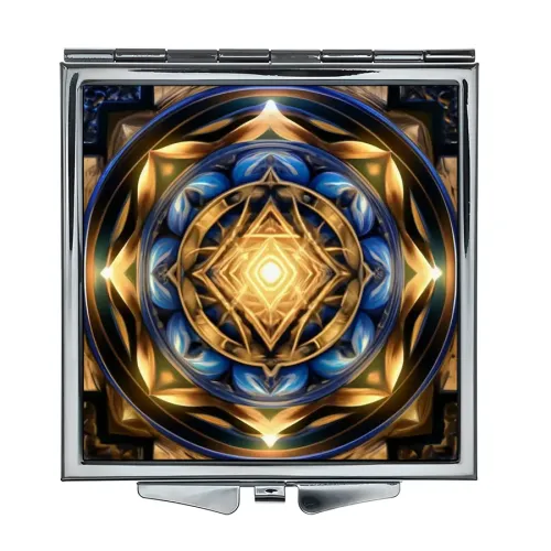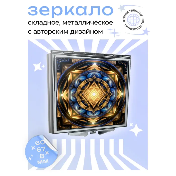 Складное квадратное зеркало с сакральным узором для использования в качестве сувенира или интерьерного декора.