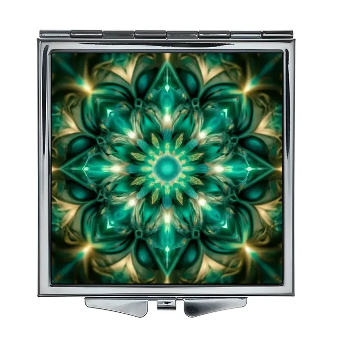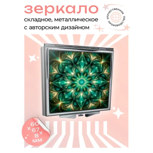 Складное квадратное зеркало с изображением в стиле зелёного калейдоскопа.