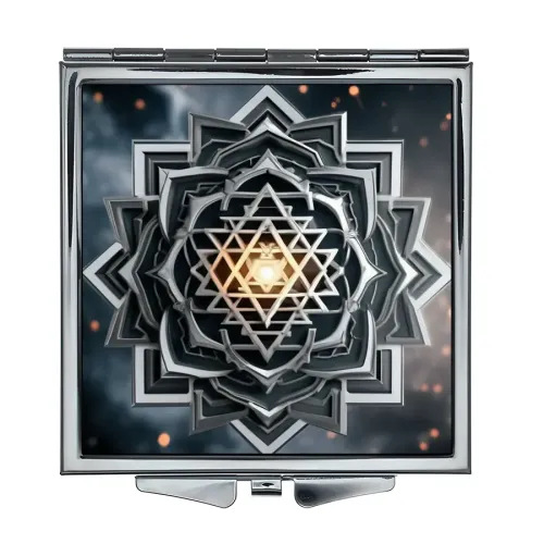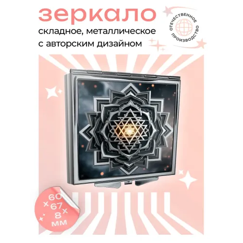 Складное зеркало квадратной формы с полноцветным изображением на поверхности.