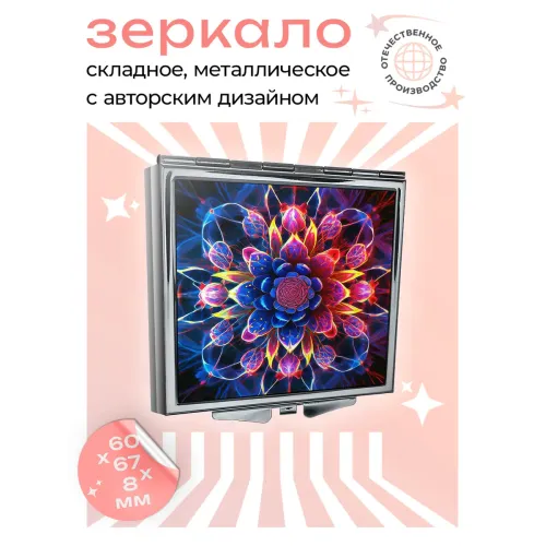 Складное зеркало квадратной формы с изображением космического узора.