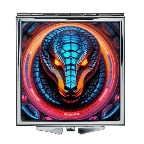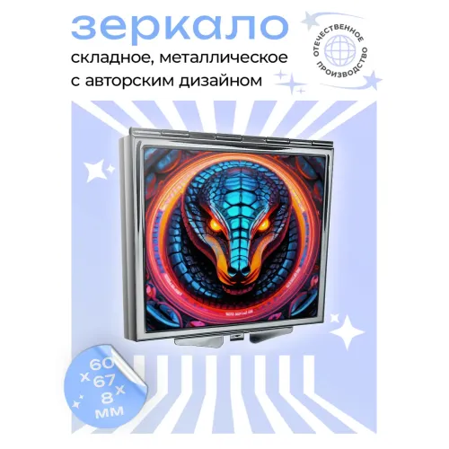 Складное зеркало квадратной формы с ярким изображением. Изготовлено из металла и стекла.