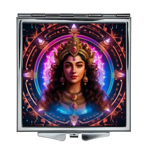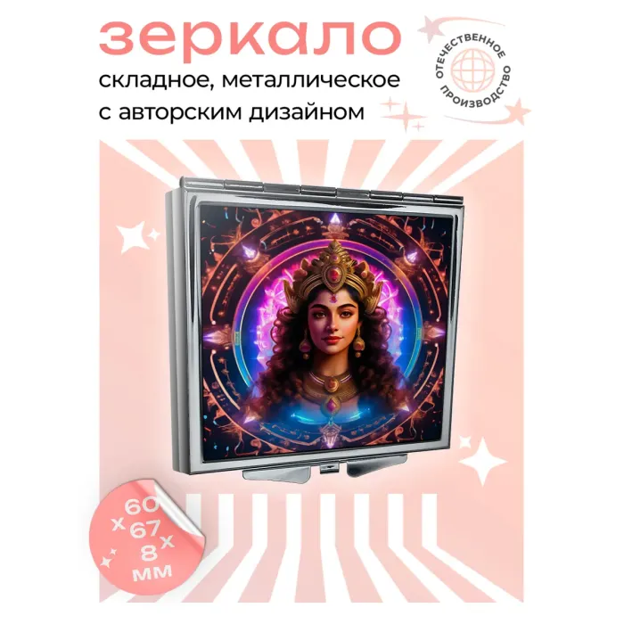 Складное квадратное зеркало с полноцветным изображением на металлической основе.