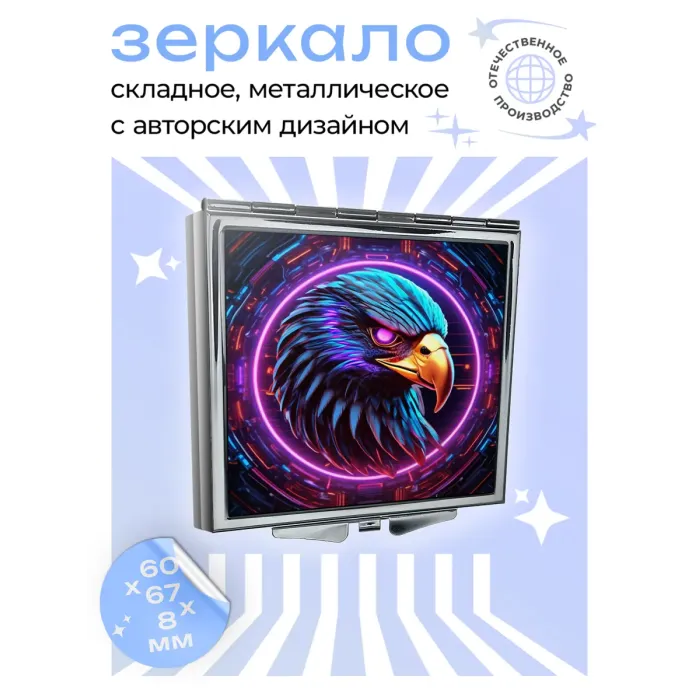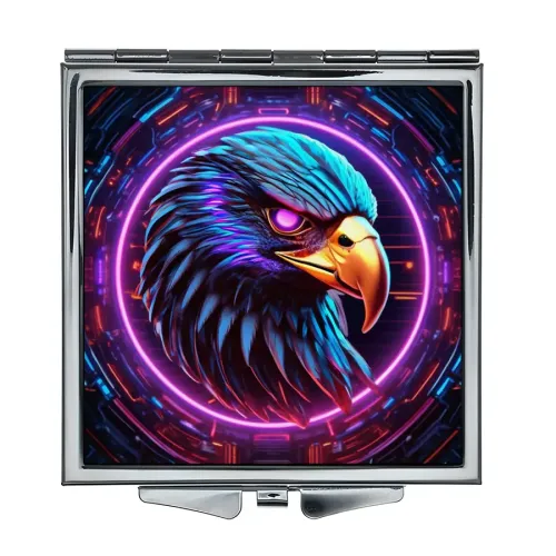 Складное зеркало квадратной формы с изображением орла в неоновом стиле.