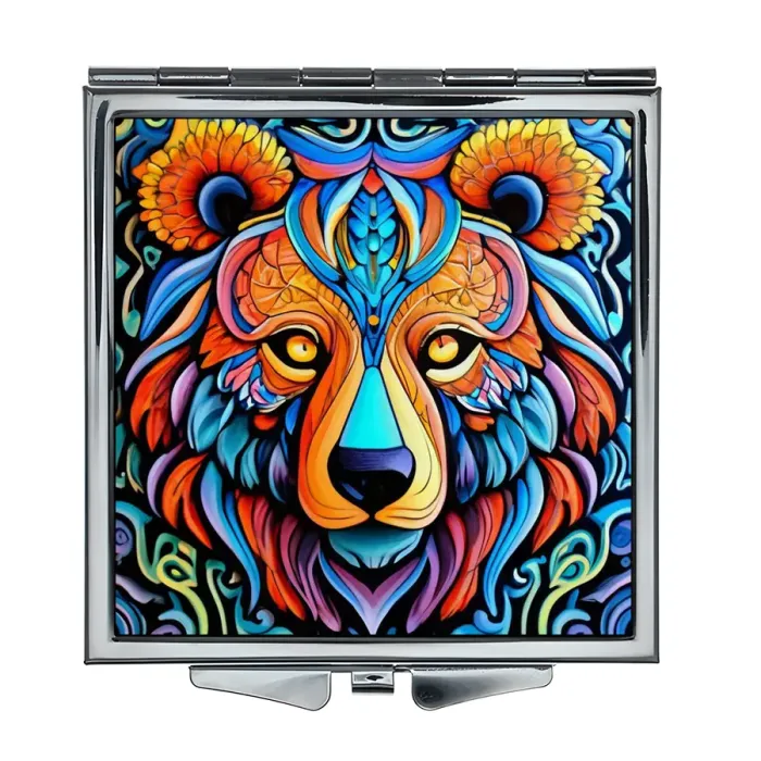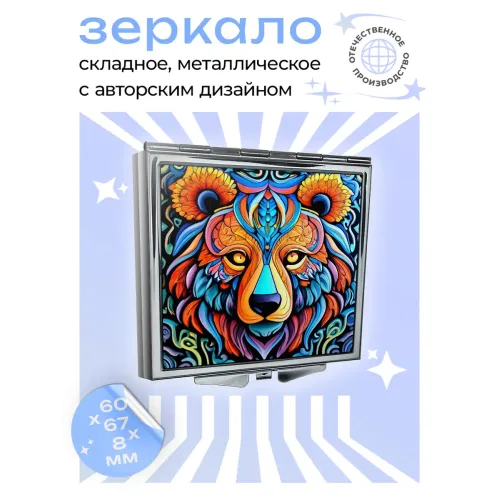 Складное зеркало квадратной формы с изображением медведя. Назначение: сувенирный аксессуар.