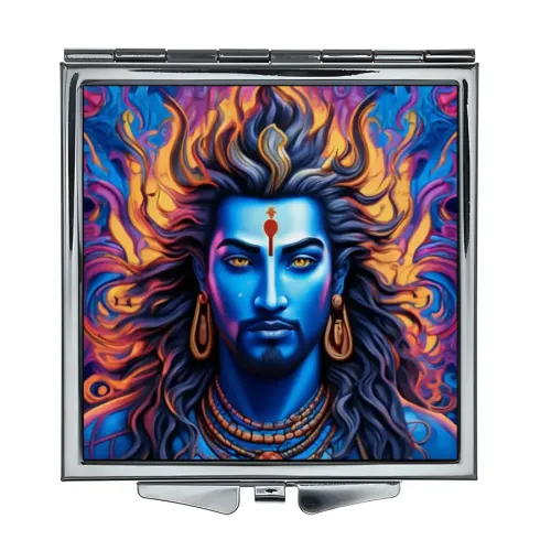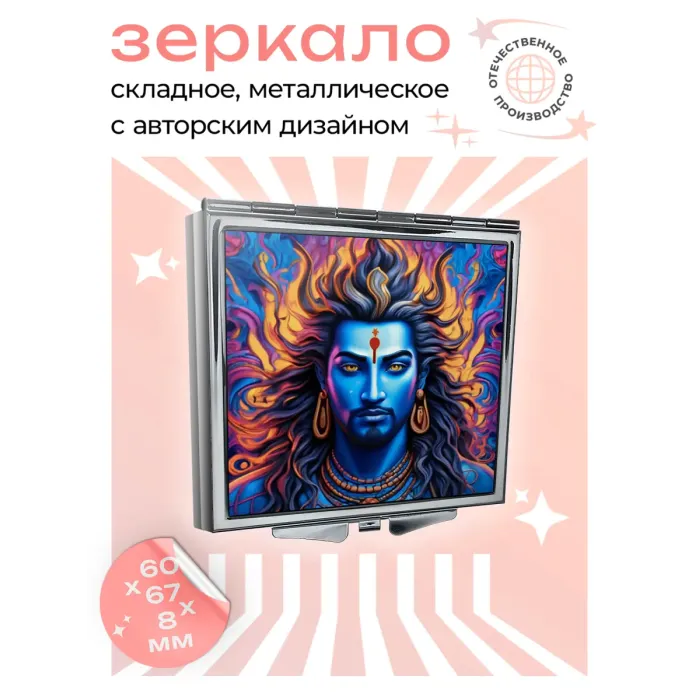 Складное квадратное зеркало с полноцветным изображением на металлической основе.