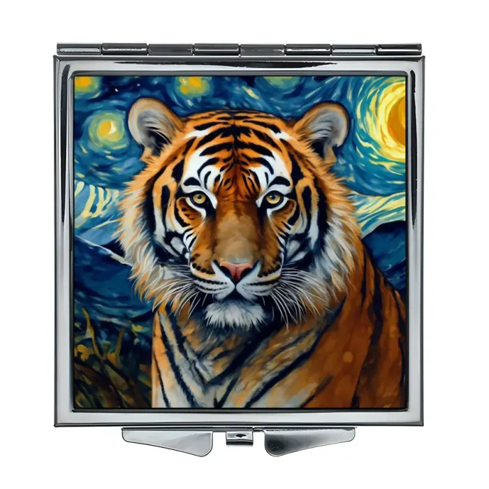 Складное зеркало квадратное Тигр звездная ночь ZER2-0888