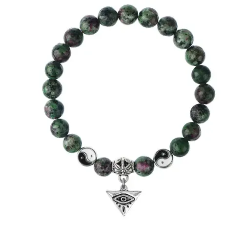 Браслет-амулет из синтетического цоизита с подвеской из бижутерного сплава.