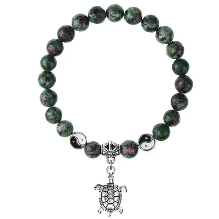 Браслет-амулет из камня цоизит с подвеской в виде черепахи.