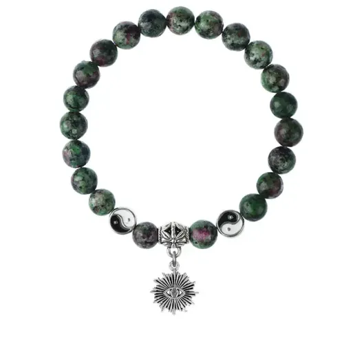 Браслет-амулет из синтетического камня цоизит с подвеской из бижутерного сплава.