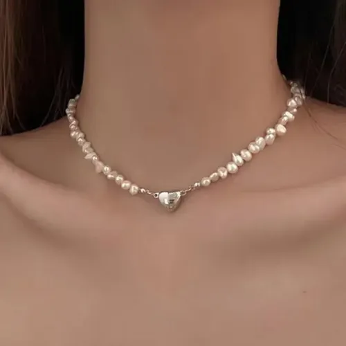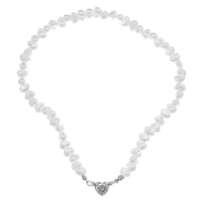 Бусы из искусственного жемчуга с подвеской в форме сердца и магнитным замком.