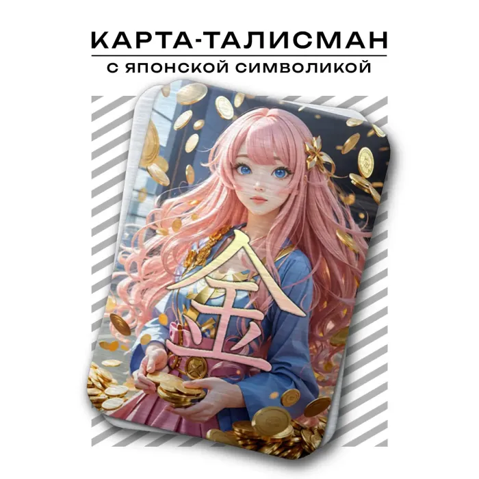 Магическая карта с японской символикой, изготовленная из металла толщиной 0,45 мм. Размер карты составляет 56х80 мм. Упакована в прозрачный пакетик с описанием. Этот символ является одним из самых популярных в Японии и олицетворяет богатство, привлекая финансовые блага. Традиционно используется как оберег для привлечения удачи и процветания.