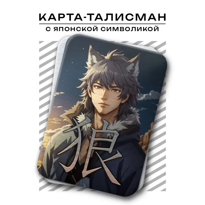Карта-талисман с японской символикой, выполненная из металла толщиной 0,45 мм. Размер карты составляет 56х80 мм. Упакована в прозрачный пакетик с описанием. Символ Волка (Оками) олицетворяет силу, смелость, независимость и свободу. Эта карта традиционно используется для достижения целей и повышения уверенности в себе.