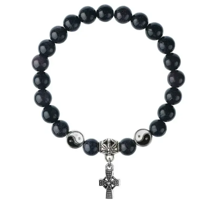 Браслет Крест (мудрость, гармония, процветание), Синий авантюрин 8мм BSPE1-26-3004