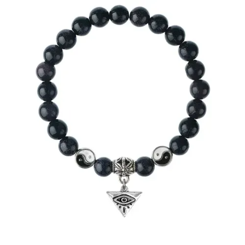 Браслет-амулет из синтетического синего авантюрина с подвеской-талисманом.