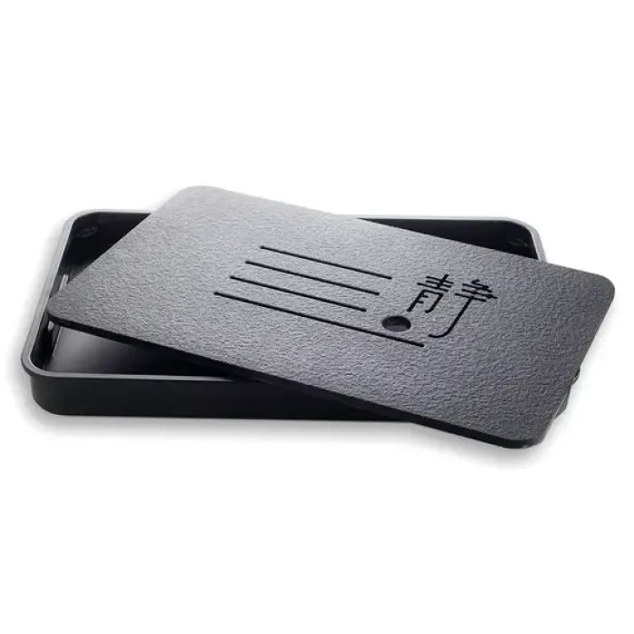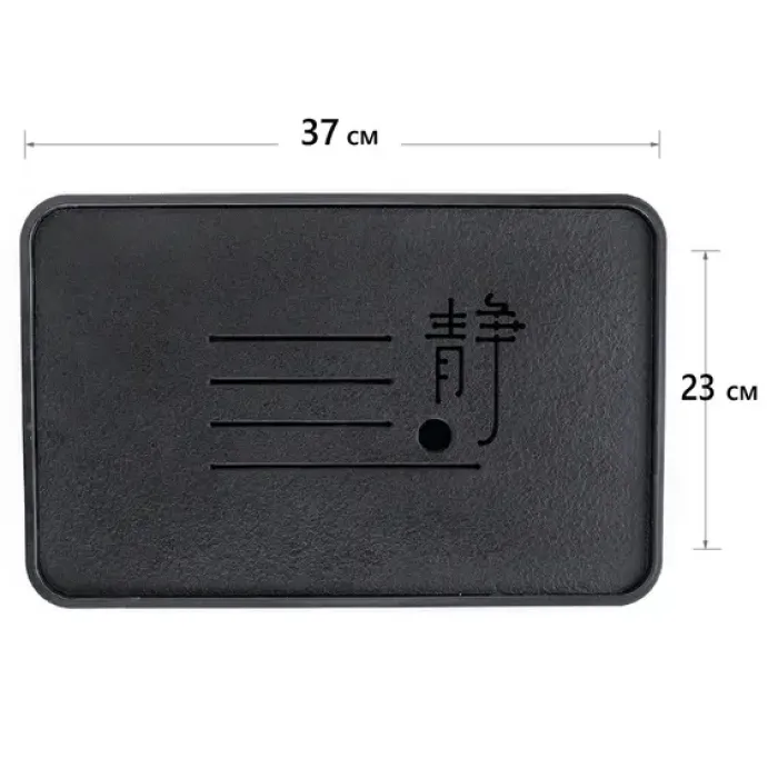 Прямоугольная чабань из искусственного камня с чёрным поддоном служит функциональным столиком для чайной церемонии. Модель отличается компактными размерами и прочностью материала.